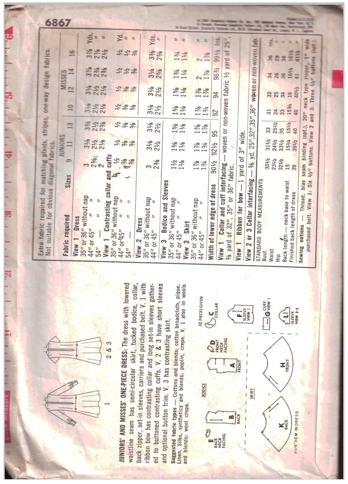 If this Simplicity 6867 sewing pattern is not exactly what you are looking for please do look at my other similar listings; I stock a wide variety of vintage and recycled patterns lovingly collected at estate sales, thrift stores and every place I can find them and listed here for your shopping convenience.
