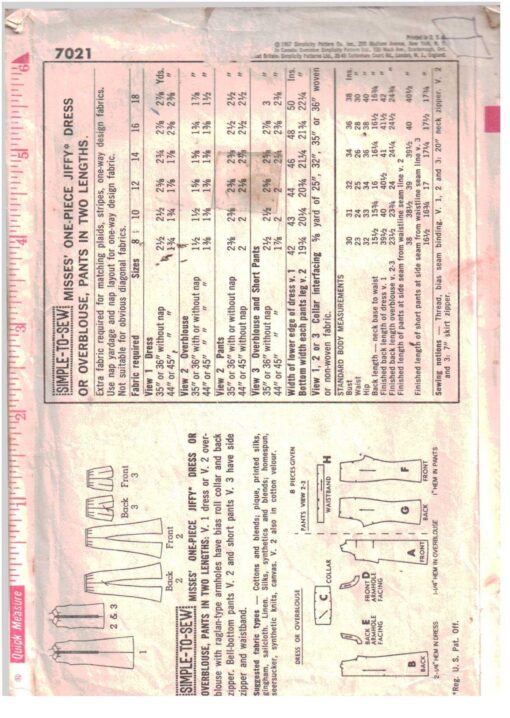 Simplicity 7021 Sewing Pattern
