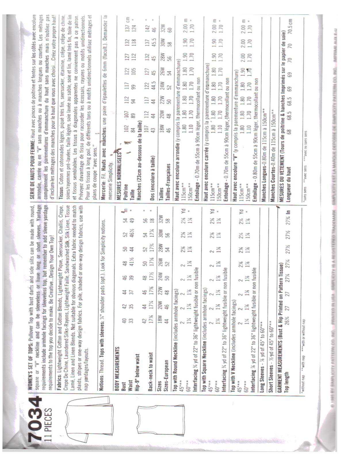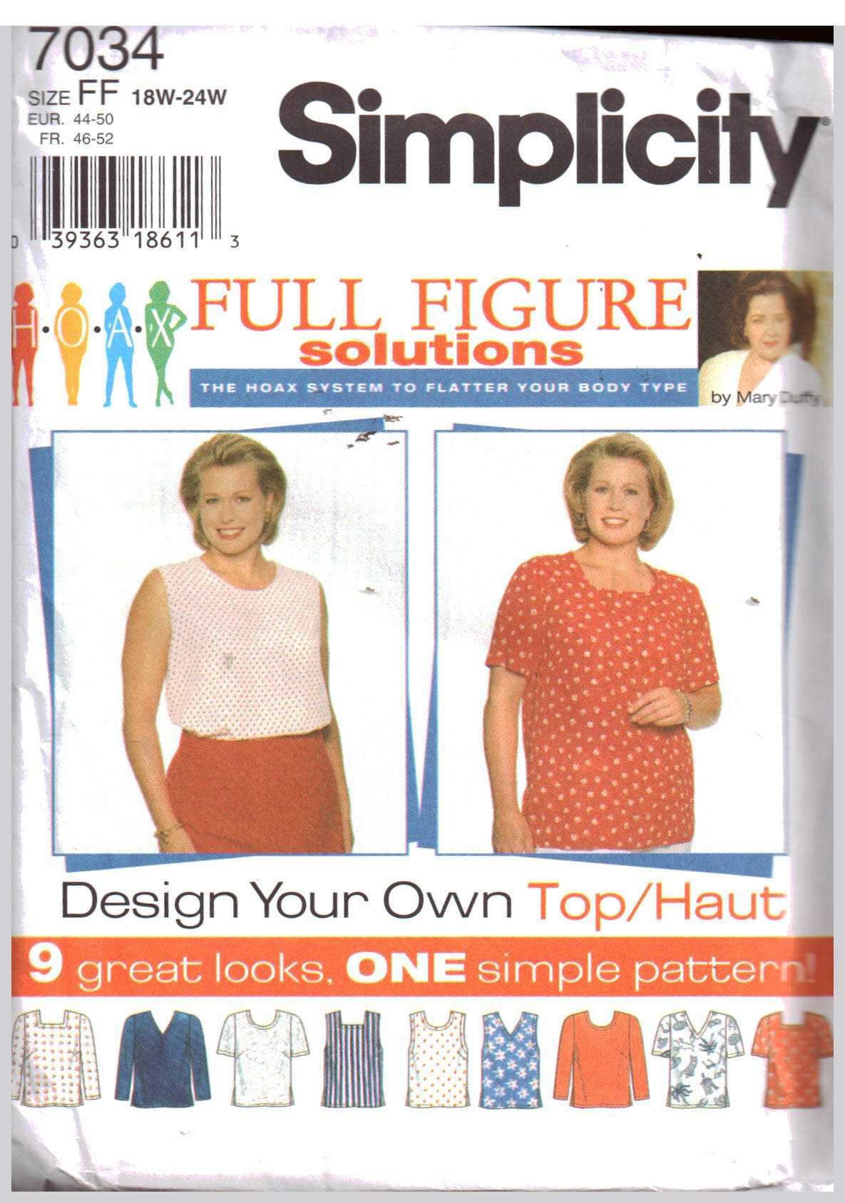 Simplicity 7034 Tops Size: FF 18W-24W Uncut Sewing Pattern