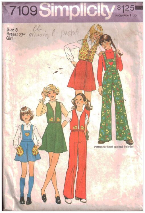 Simplicity 7109 Girl’s Skirt, Pants, Vest Size: 8 Breast 27 Used Sewing Pattern