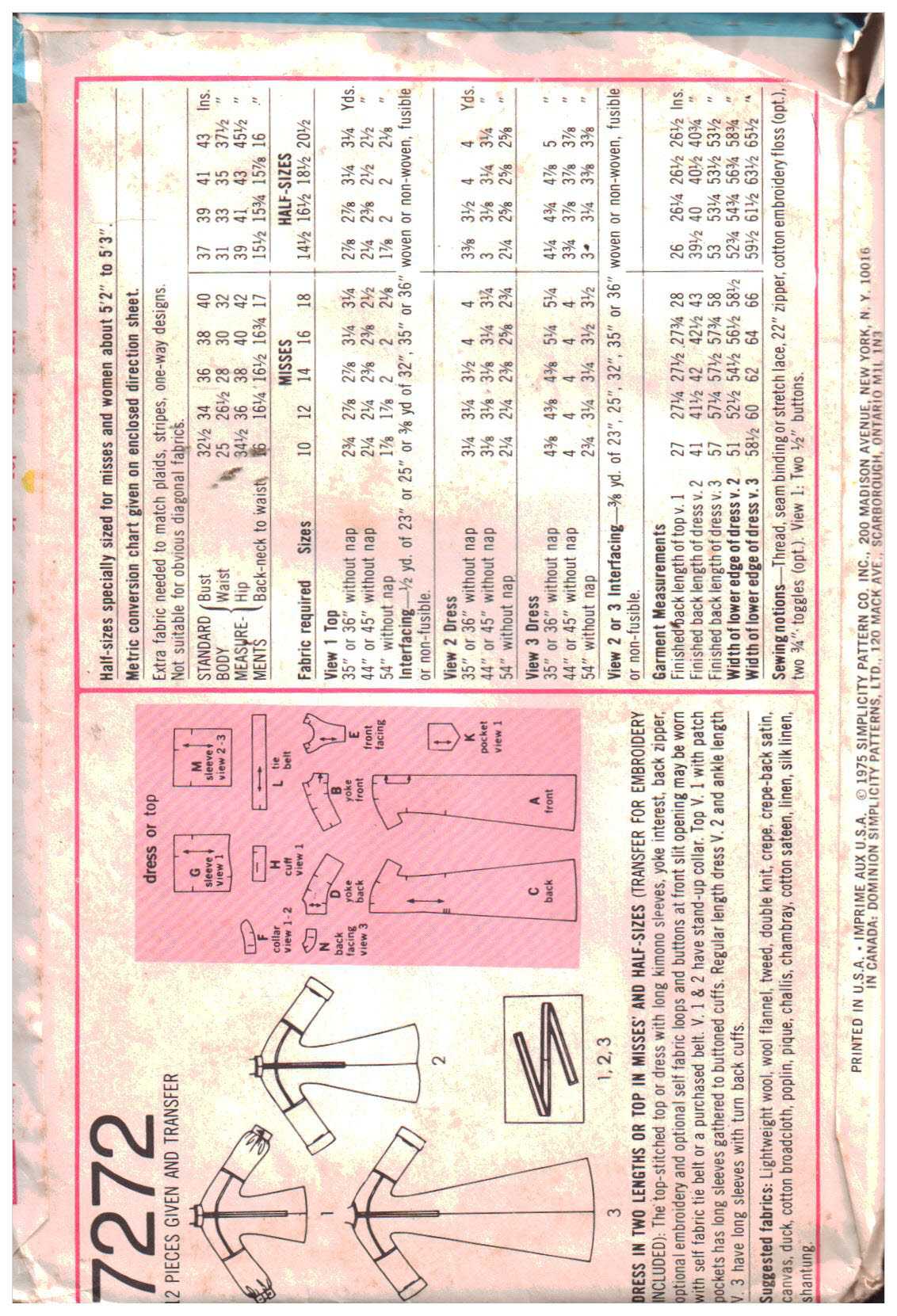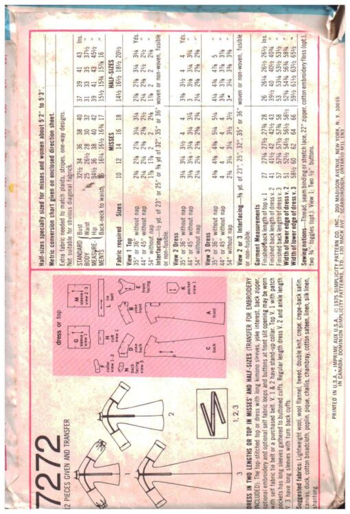 If this Simplicity 7272 sewing pattern is not exactly what you are looking for please do look at my other similar listings; I stock a wide variety of vintage and recycled patterns lovingly collected at estate sales, thrift stores and every place I can find them and listed here for your shopping convenience.