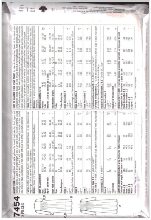 Simplicity 7454 Robe Size: AA XS-S-M Used Sewing Pattern