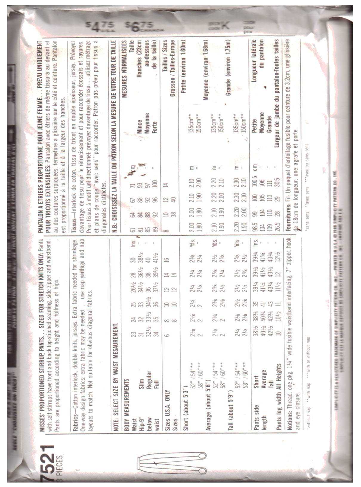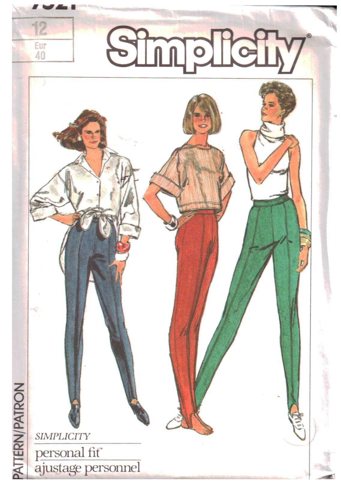 Simplicity 7521 Stirrup Pants Size: 12 or 14 Uncut Sewing Pattern