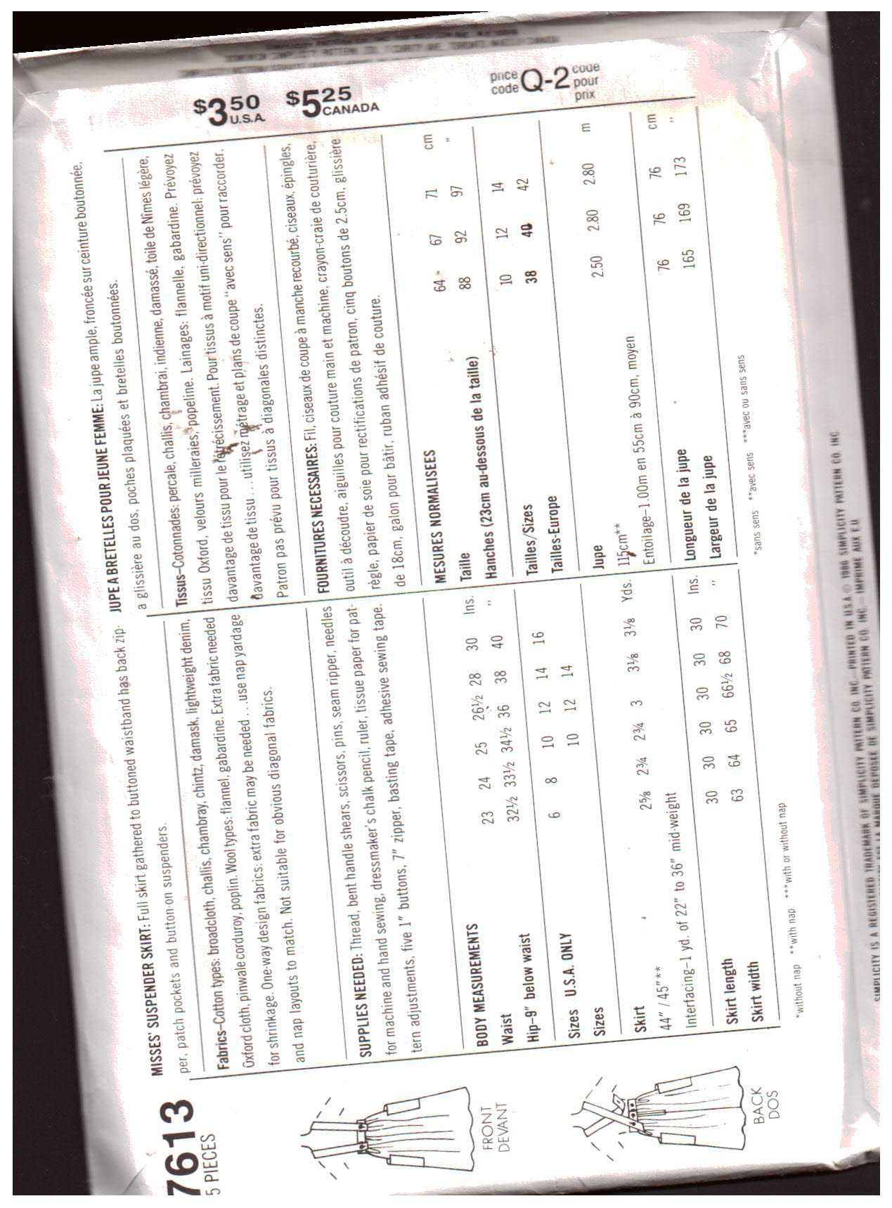 Simplicity 7613 Suspender Skirt Size:6 Used Sewing Pattern