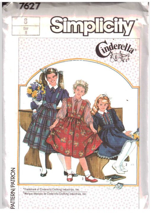 Simplicity 7627 Girl’s Skirt with or without suspenders, Blouse Size: 8 Uncut Sewing Pattern