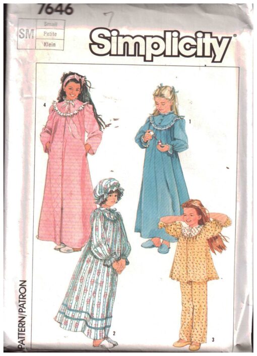 Simplicity 7646 Girl’s Nightgown, Robe, Hat Size: 5-6 Used Sewing Pattern