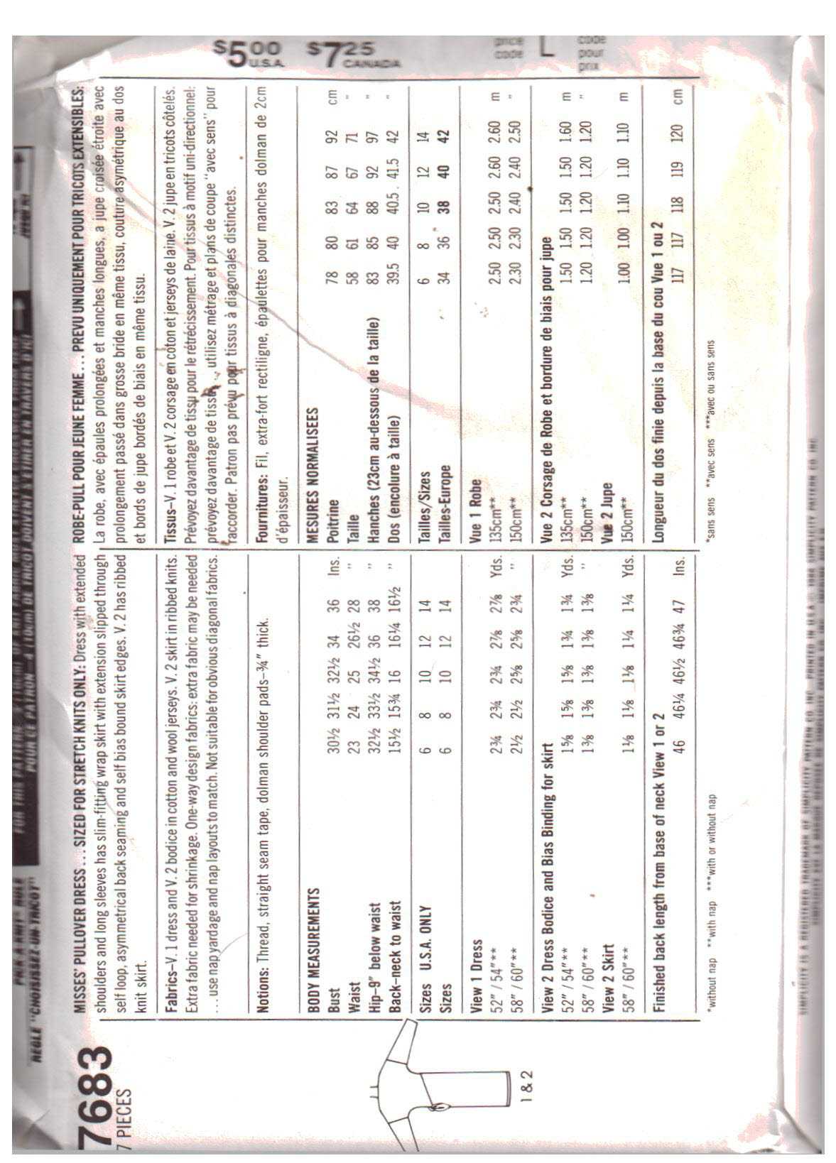 If this Simplicity 7683 sewing pattern is not exactly what you are looking for please do look at my other similar listings; I stock a wide variety of vintage and recycled patterns lovingly collected at estate sales, thrift stores and every place I can find them and listed here for your shopping convenience.