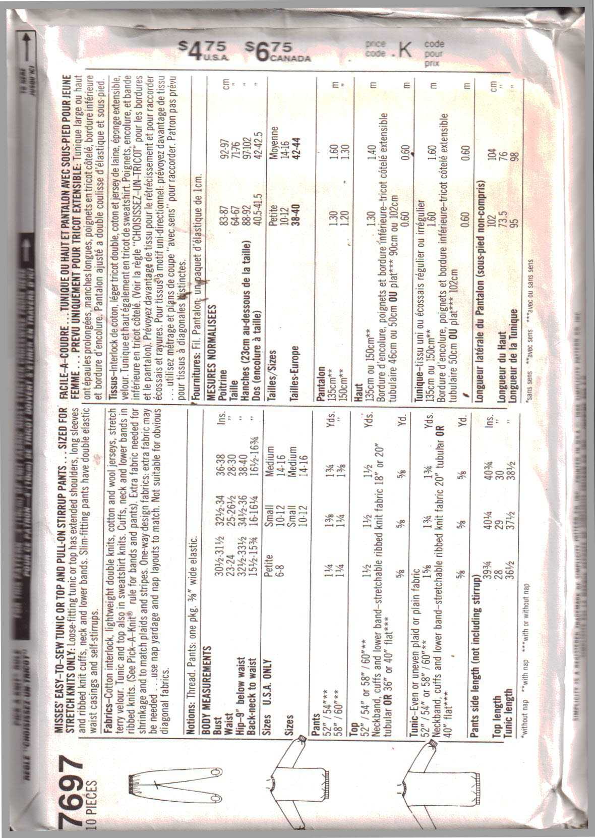 Simplicity 7697 Tunic, Top, Pants Size: 6-8 Uncut Sewing Pattern
