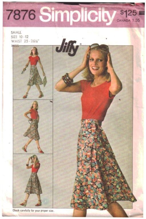 Simplicity 7876 Front Wrap Skirt Size: 10-12 Waist 25-26.5 Uncut Sewing Pattern