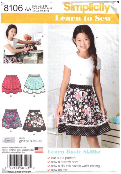 Simplicity 8106 Girl’s Skirt Size: AA 8-16 Uncut Sewing Pattern