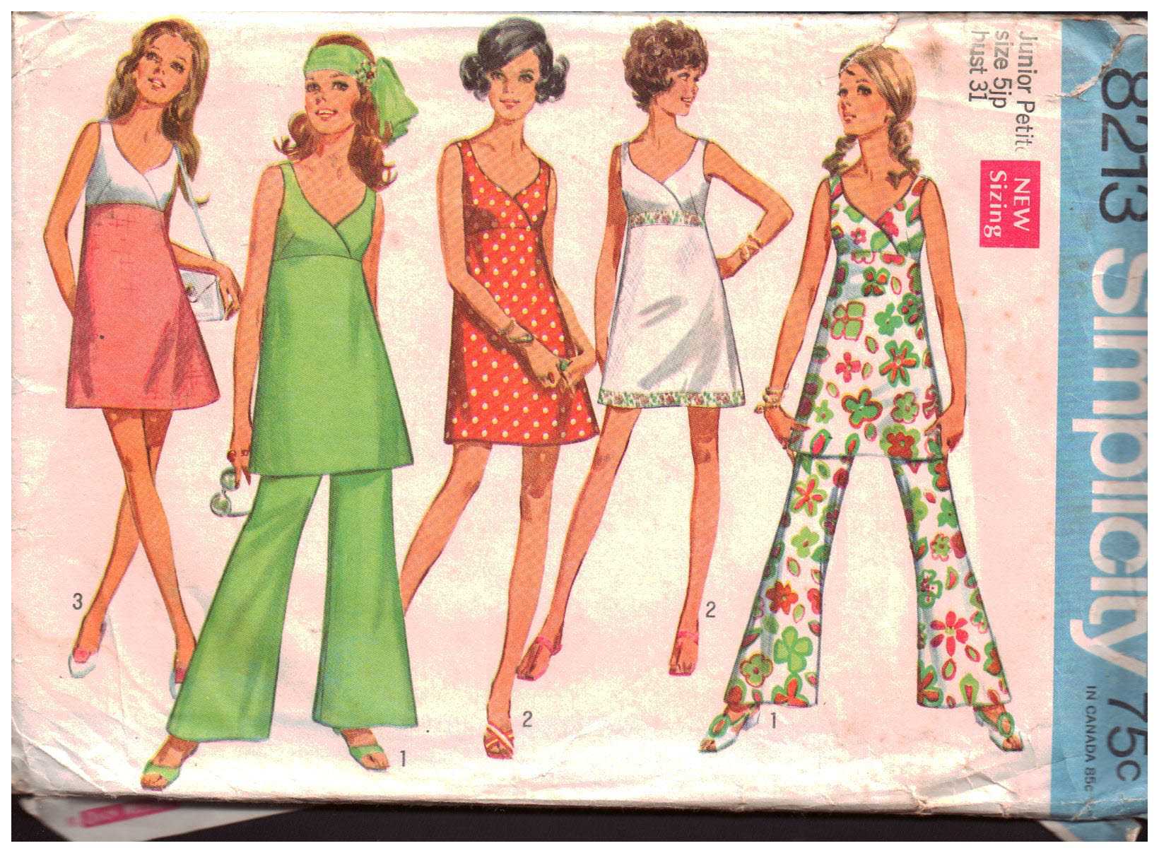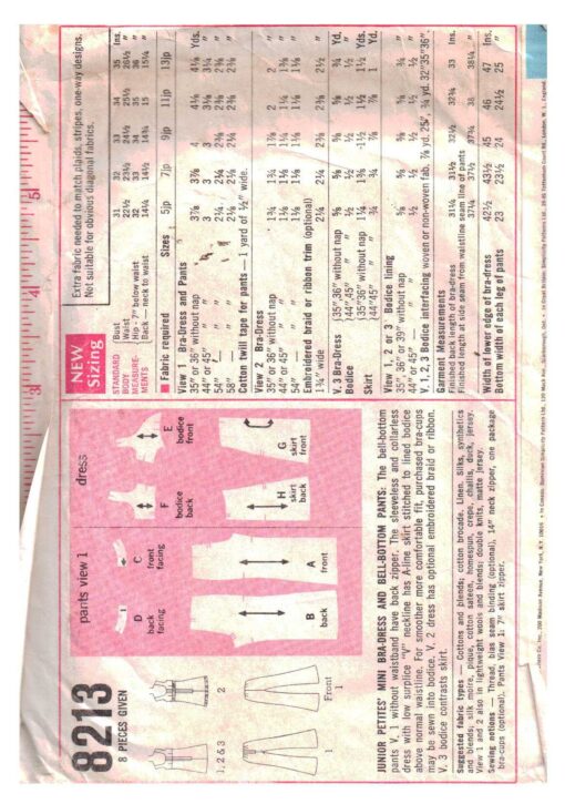 Simplicity 8213 Bra-Dress, Top, Bell-Bottom Pants Size: 5JP Bust 31 Used Sewing Pattern