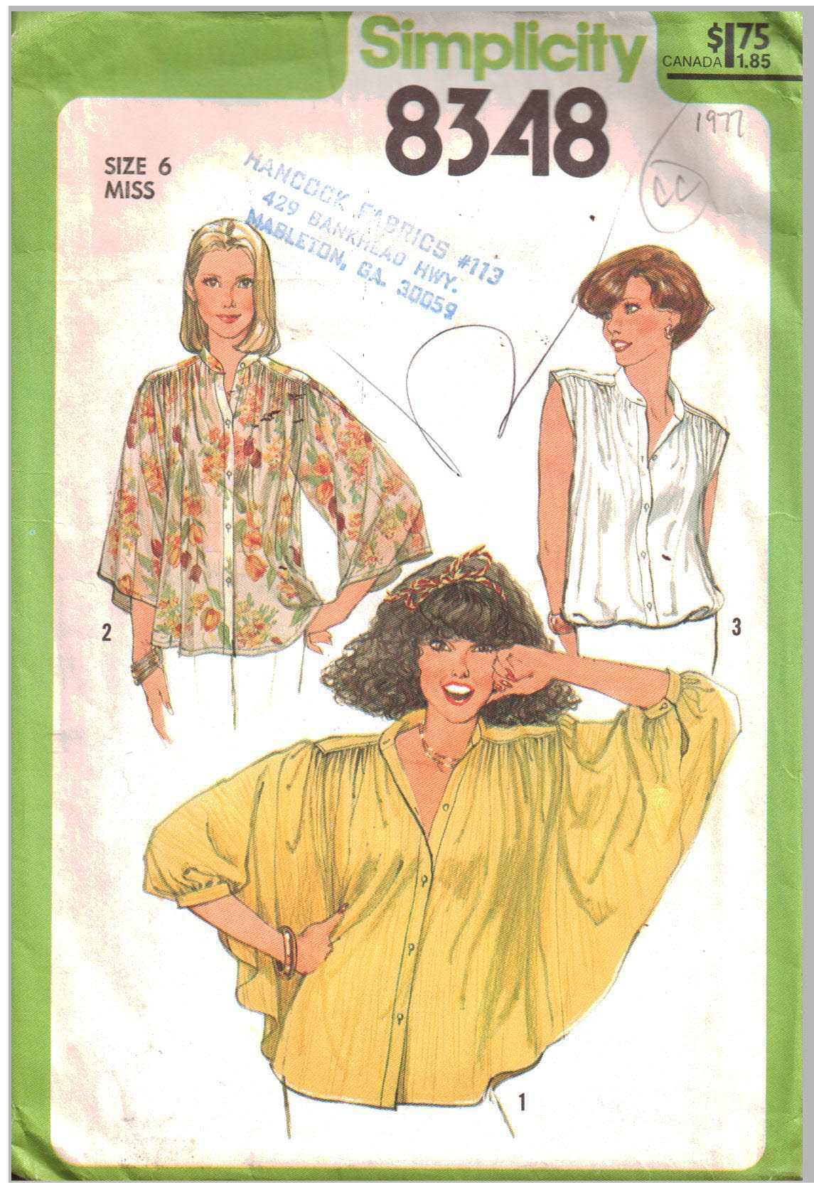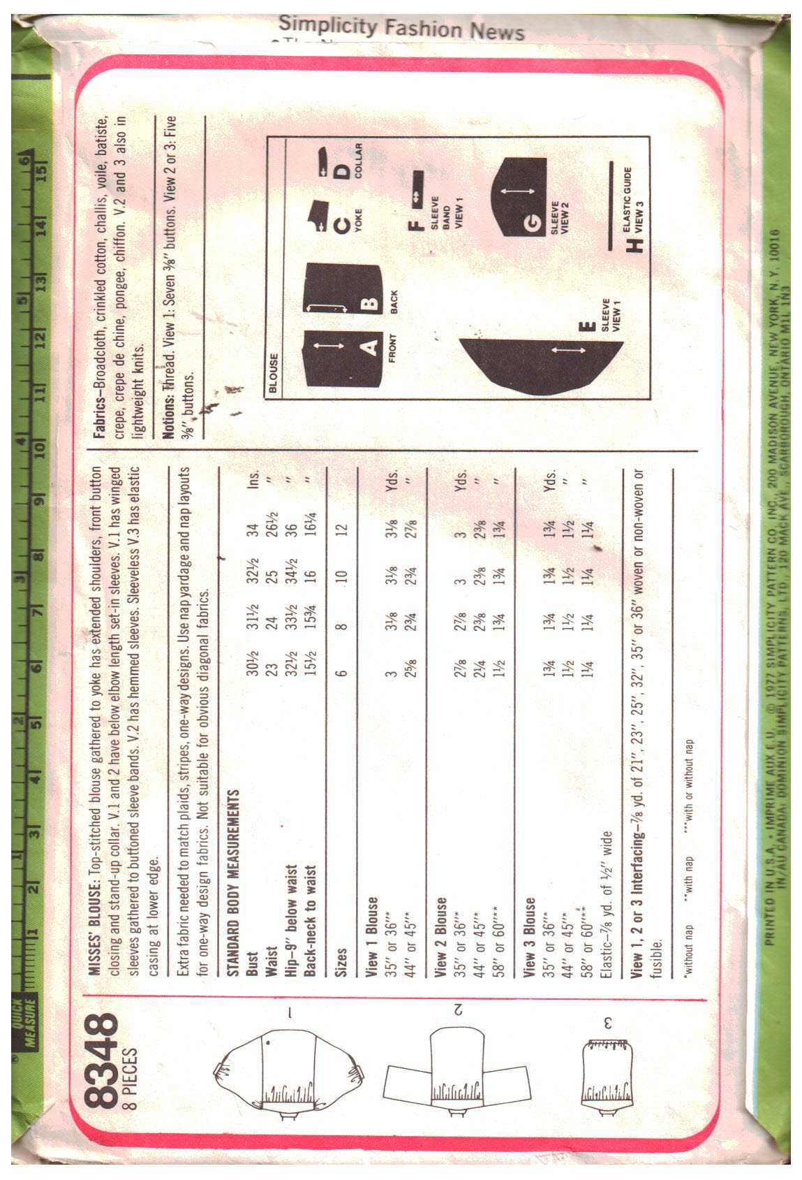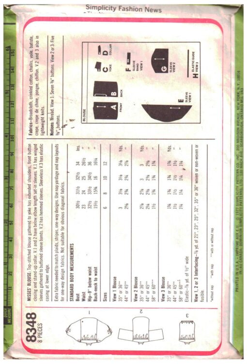 Simplicity 8348 Blouse Size: 6 Used Sewing Pattern