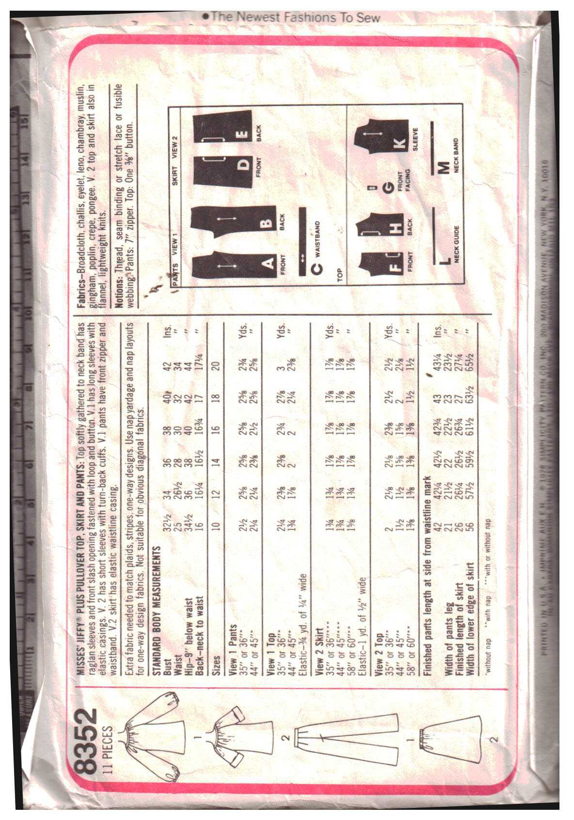 Simplicity 8352 Top, Skirt, Pants Size: 12 Used Sewing Pattern