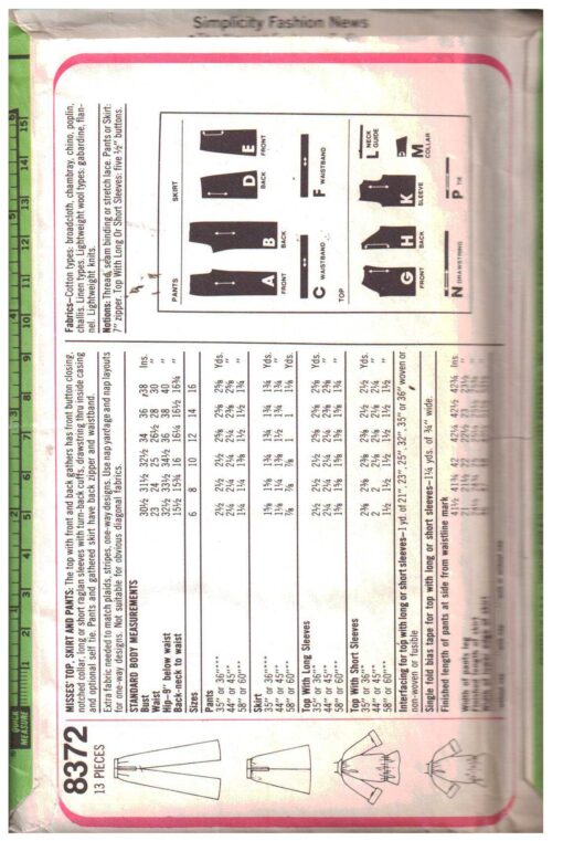 If this Simplicity 8372 sewing pattern is not exactly what you are looking for please do look at my other similar listings; I stock a wide variety of vintage and recycled patterns lovingly collected at estate sales, thrift stores and every place I can find them and listed here for your shopping convenience.