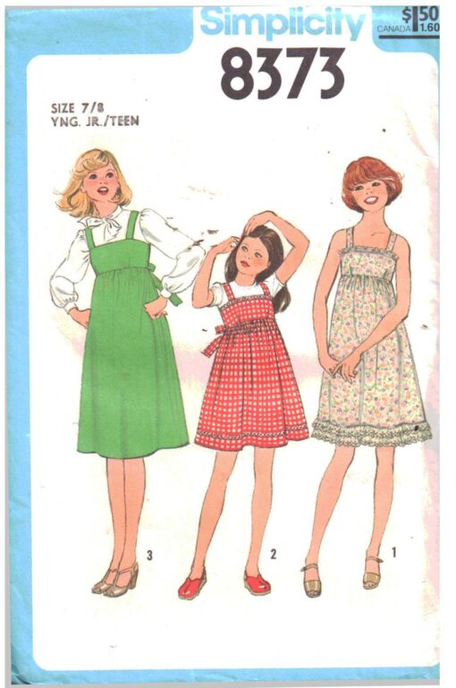 Simplicity 8373 Girl’s Dress, Jumper Size: 7/8J Uncut Sewing Pattern