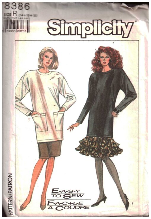 Simplicity 8386 Tunic, Skirt Size: R 14-16-18 Uncut Sewing Pattern