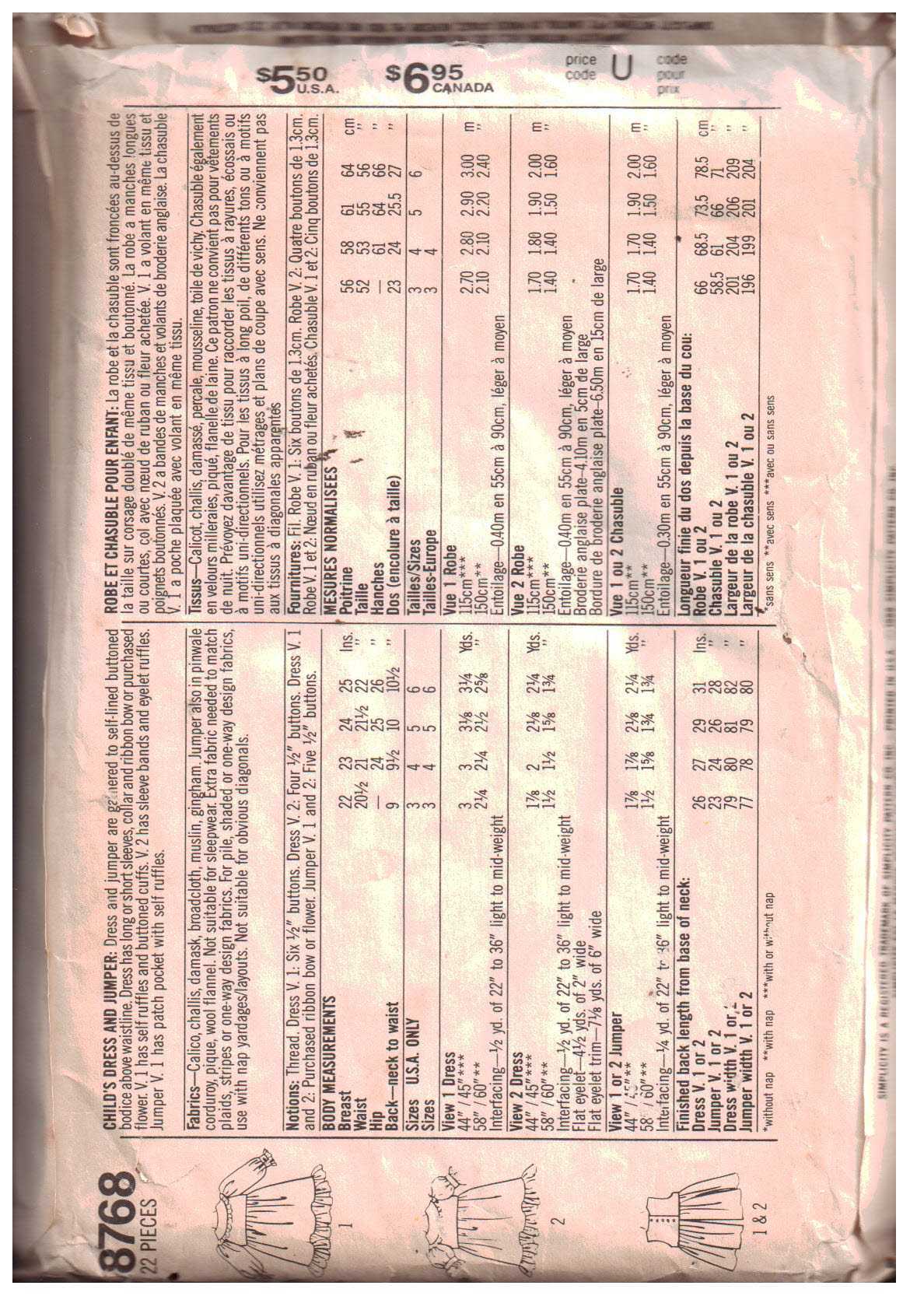 If this Simplicity 8768 sewing pattern is not exactly what you are looking for please do look at my other similar listings; I stock a wide variety of vintage and recycled patterns lovingly collected at estate sales, thrift stores and every place I can find them and listed here for your shopping convenience.
