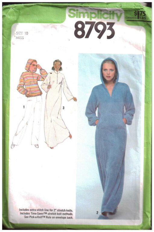 Simplicity 8793 Sweatshirt Dress, Top with or without Hood Size: 10 Used Sewing Pattern