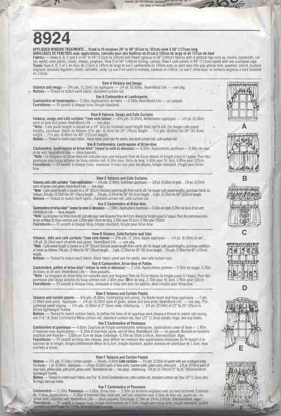 Simplicity 8924 Appliqued Window Treatments Size: One Uncut Sewing Pattern