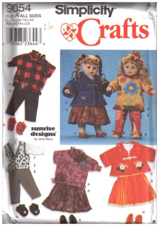 Simplicity 9054 Doll Clothes Size: 20,22,23″ Uncut Sewing Pattern