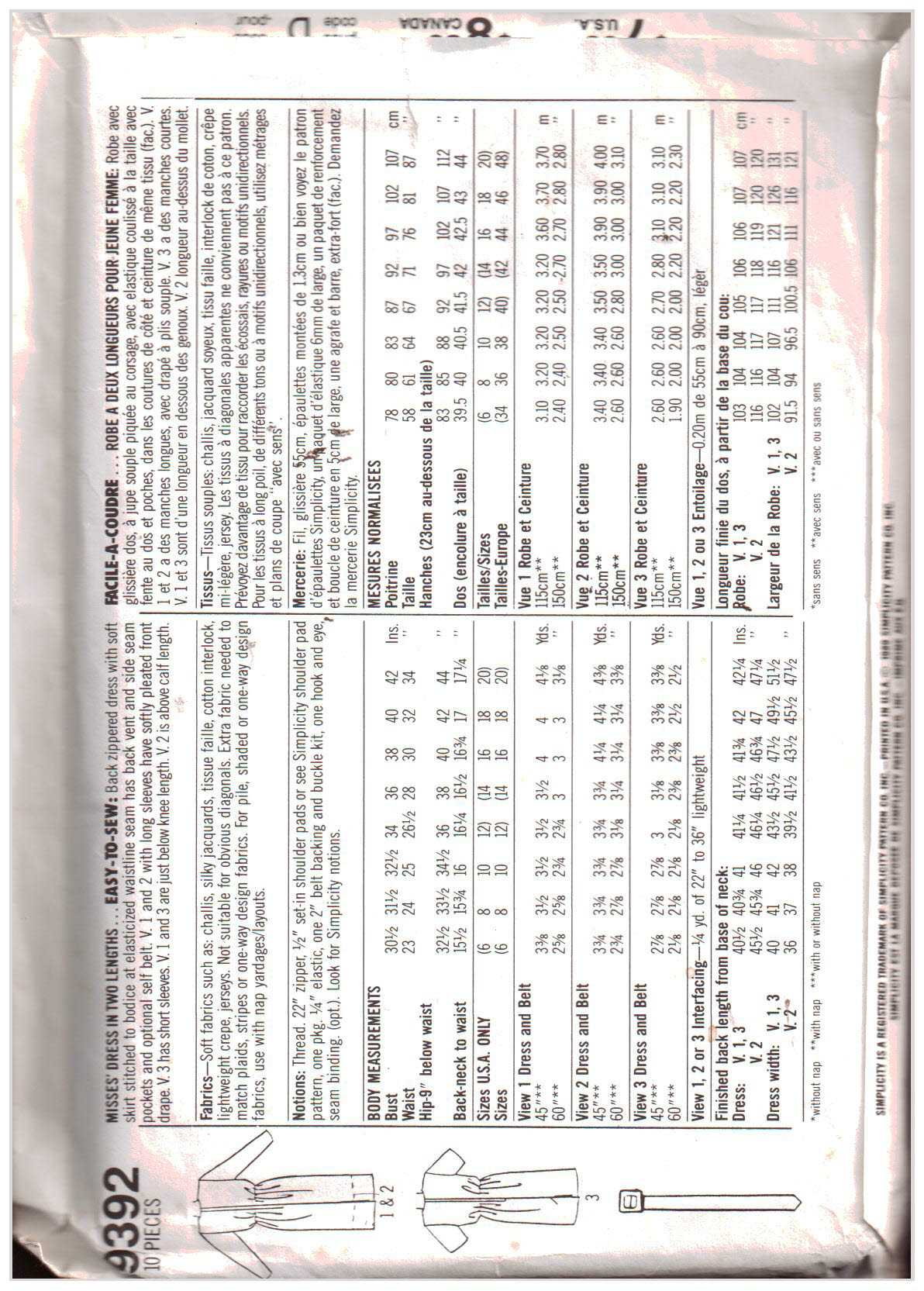 If this Simplicity 9392 sewing pattern is not exactly what you are looking for please do look at my other similar listings; I stock a wide variety of vintage and recycled patterns lovingly collected at estate sales, thrift stores and every place I can find them and listed here for your shopping convenience.