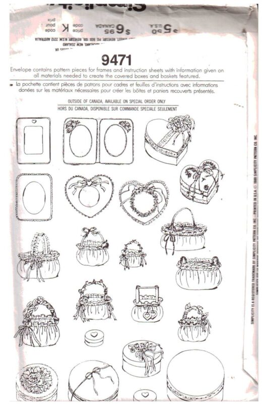 Simplicity 9471 Covered Boxes and Baskets Size: One Uncut Sewing Pattern