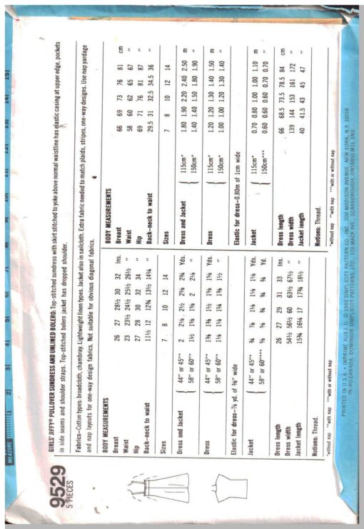 If this Simplicity 9529 sewing pattern is not exactly what you are looking for please do look at my other similar listings; I stock a wide variety of vintage and recycled patterns lovingly collected at estate sales, thrift stores and every place I can find them and listed here for your shopping convenience.