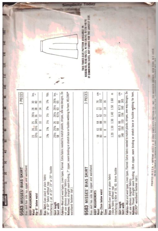 Simplicity 9583 Skirt Size: N 10-12-14 Used Sewing Pattern