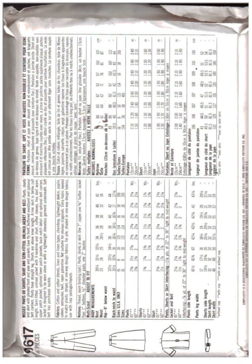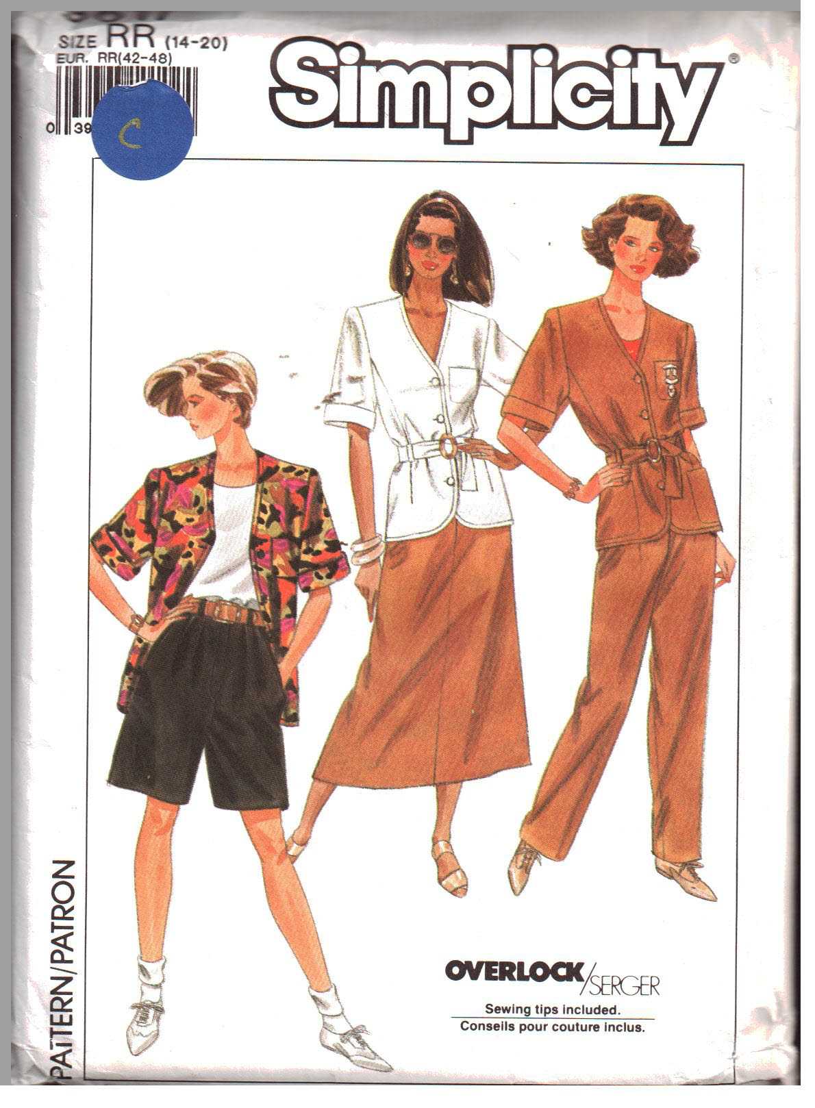 Simplicity 9617 Pants, Shorts, Skirt, Jacket Size: RR 14-20 Used Sewing Pattern
