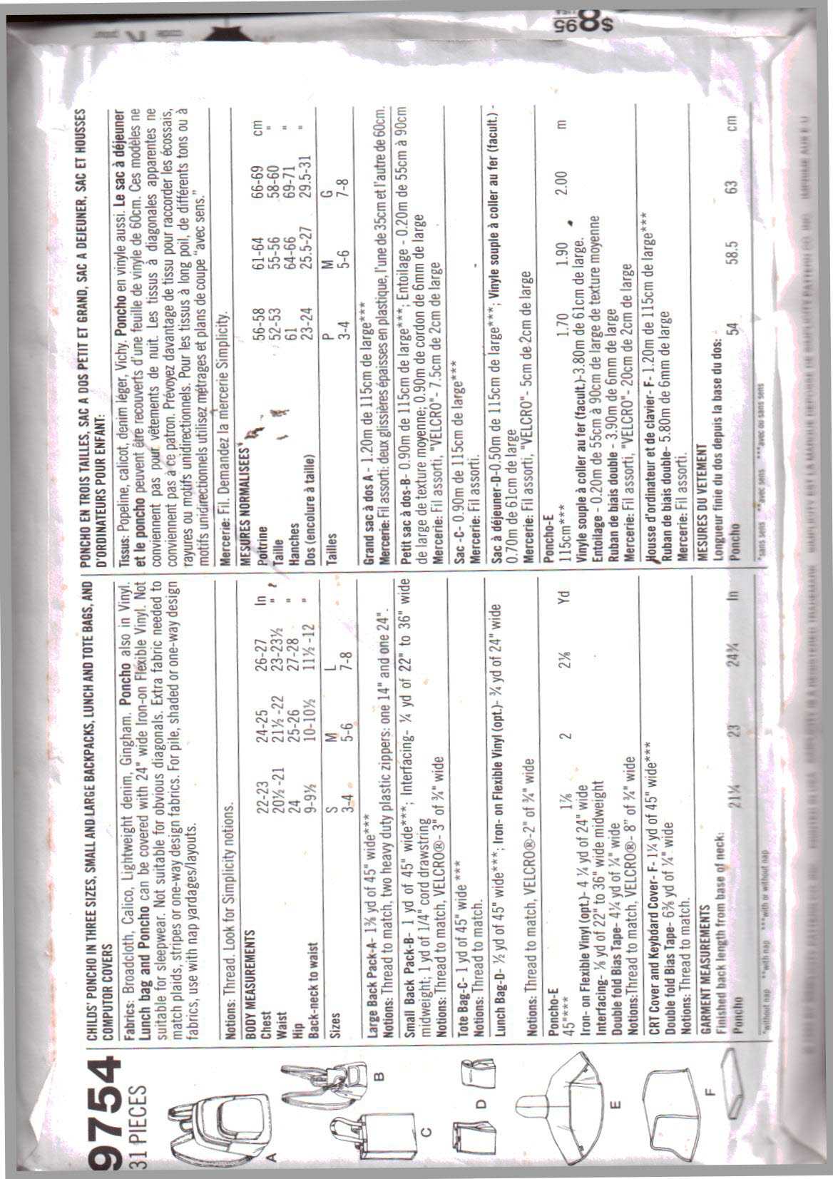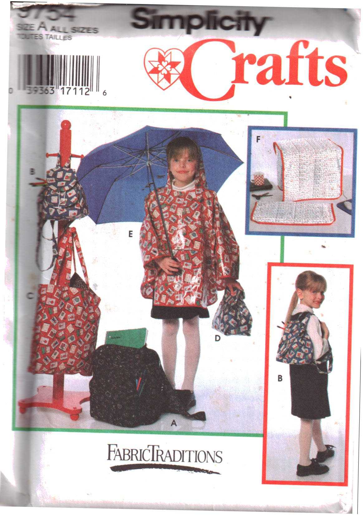Simplicity 9754 Girl’s Poncho, Backpack, Tote, Computer Cover Size: All Uncut Sewing Pattern