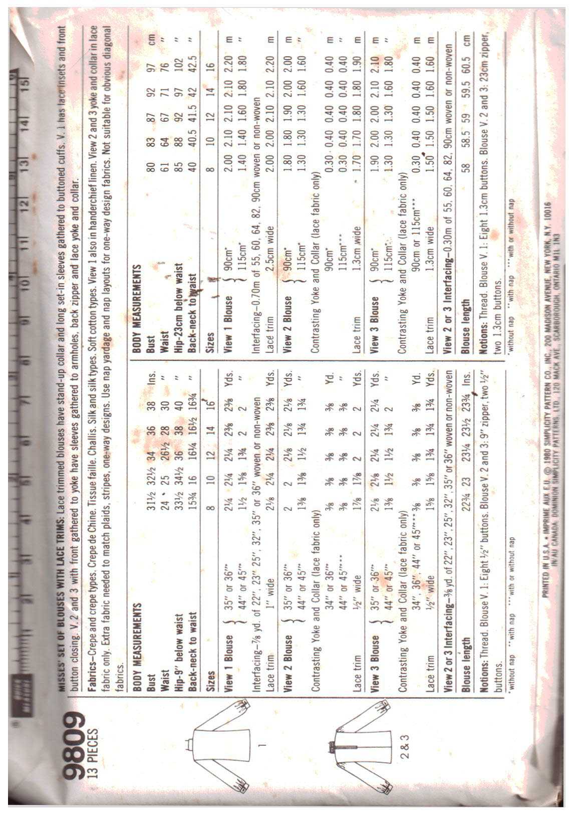 Simplicity 9809 Blouse Size: 14 Uncut Sewing Pattern