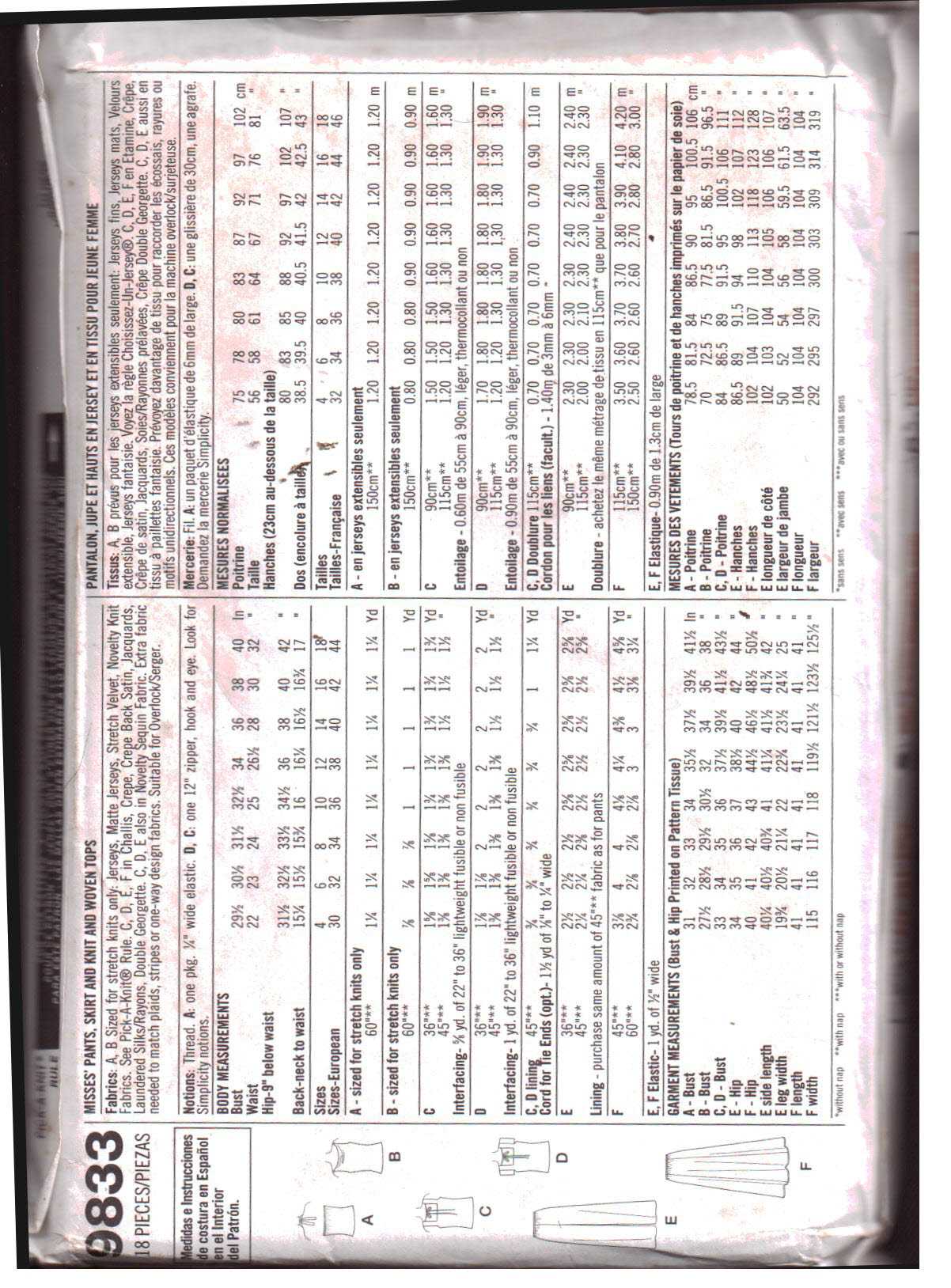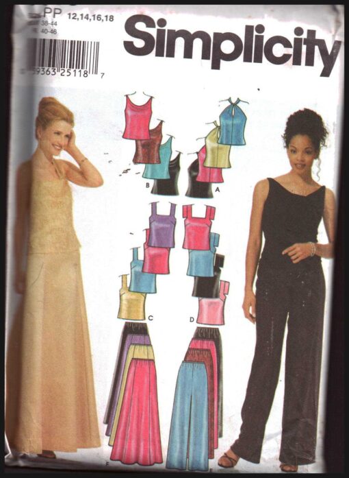 Simplicity 9833 Pants, Skirt, Tops Size: PP 12-18 Uncut Sewing Pattern