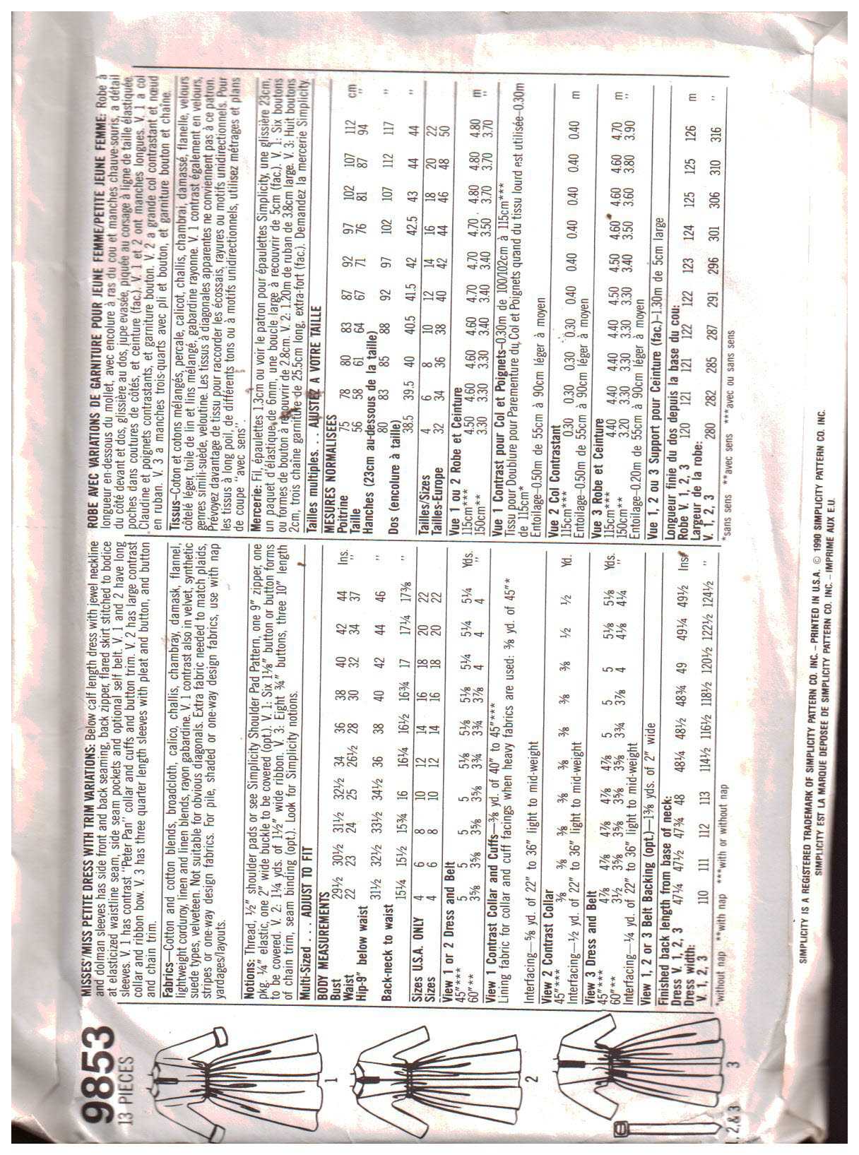 If this Simplicity 9853 sewing pattern is not exactly what you are looking for please do look at my other similar listings; I stock a wide variety of vintage and recycled patterns lovingly collected at estate sales, thrift stores and every place I can find them and listed here for your shopping convenience.