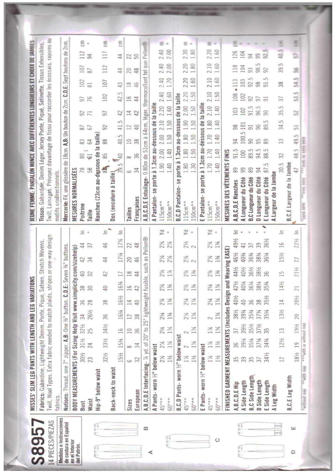 Simplicity S8957 Pants Size: H5 6-14 Uncut Sewing Pattern
