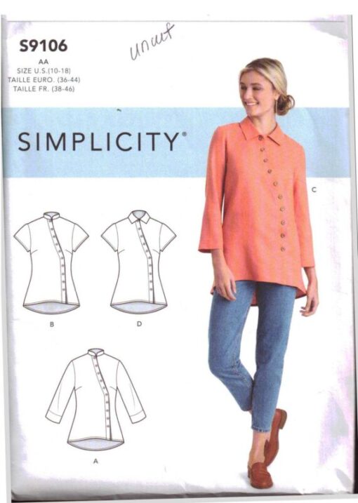 Simplicity S9106 Tops Size: AA 10-18 Uncut Sewing Pattern
