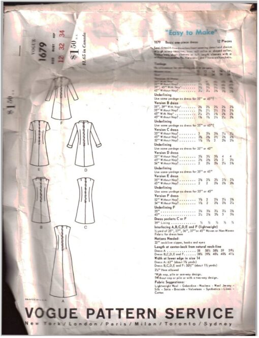 If this Vogue 1679 sewing pattern is not exactly what you are looking for please do look at my other similar listings; I stock a wide variety of vintage and recycled patterns lovingly collected at estate sales, thrift stores and every place I can find them and listed here for your shopping convenience.
