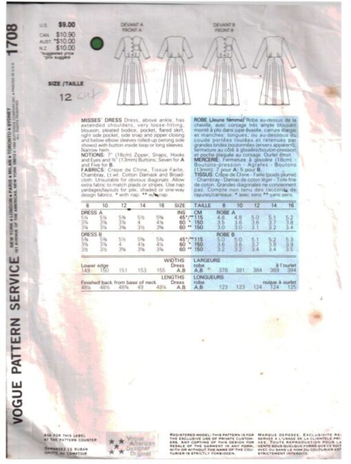 If this Vogue 1708 sewing pattern is not exactly what you are looking for please do look at my other similar listings; I stock a wide variety of vintage and recycled patterns lovingly collected at estate sales, thrift stores and every place I can find them and listed here for your shopping convenience.