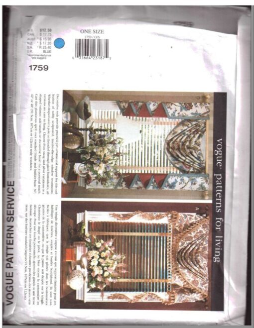Vogue 1759 Window Treatments – Valances Size: One Uncut Sewing Pattern