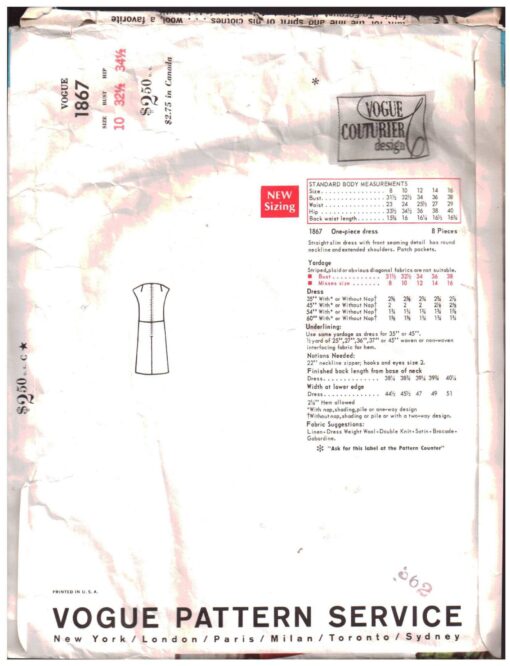 Vogue 1867 Sewing Pattern