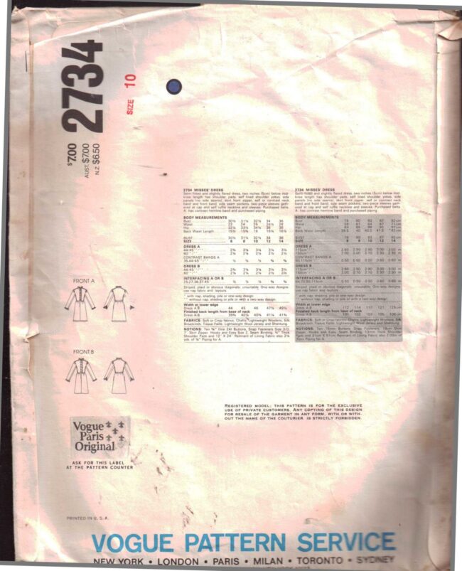 If this Vogue 2734 sewing pattern is not exactly what you are looking for please do look at my other similar listings; I stock a wide variety of vintage and recycled patterns lovingly collected at estate sales, thrift stores and every place I can find them and listed here for your shopping convenience.
