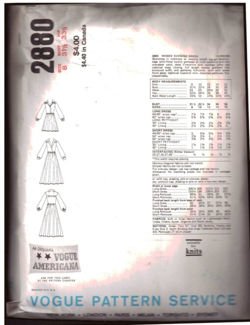 If this Vogue 2880 sewing pattern is not exactly what you are looking for please do look at my other similar listings; I stock a wide variety of vintage and recycled patterns lovingly collected at estate sales, thrift stores and every place I can find them and listed here for your shopping convenience.