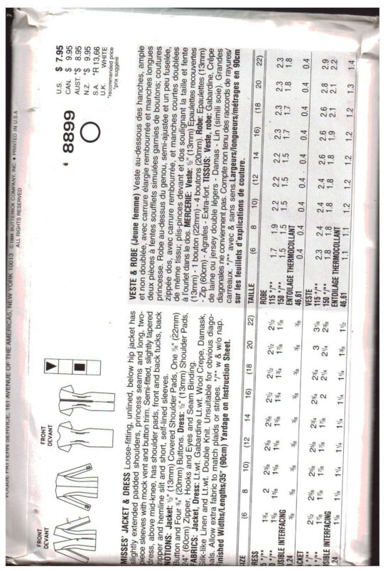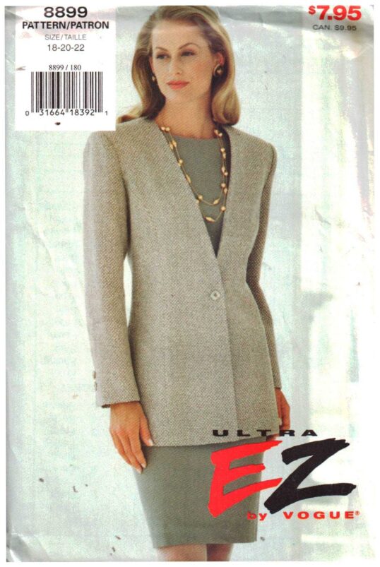 Vogue 8899 Suit – Jacket, Dress Size: 18-20-22 Uncut Sewing Pattern